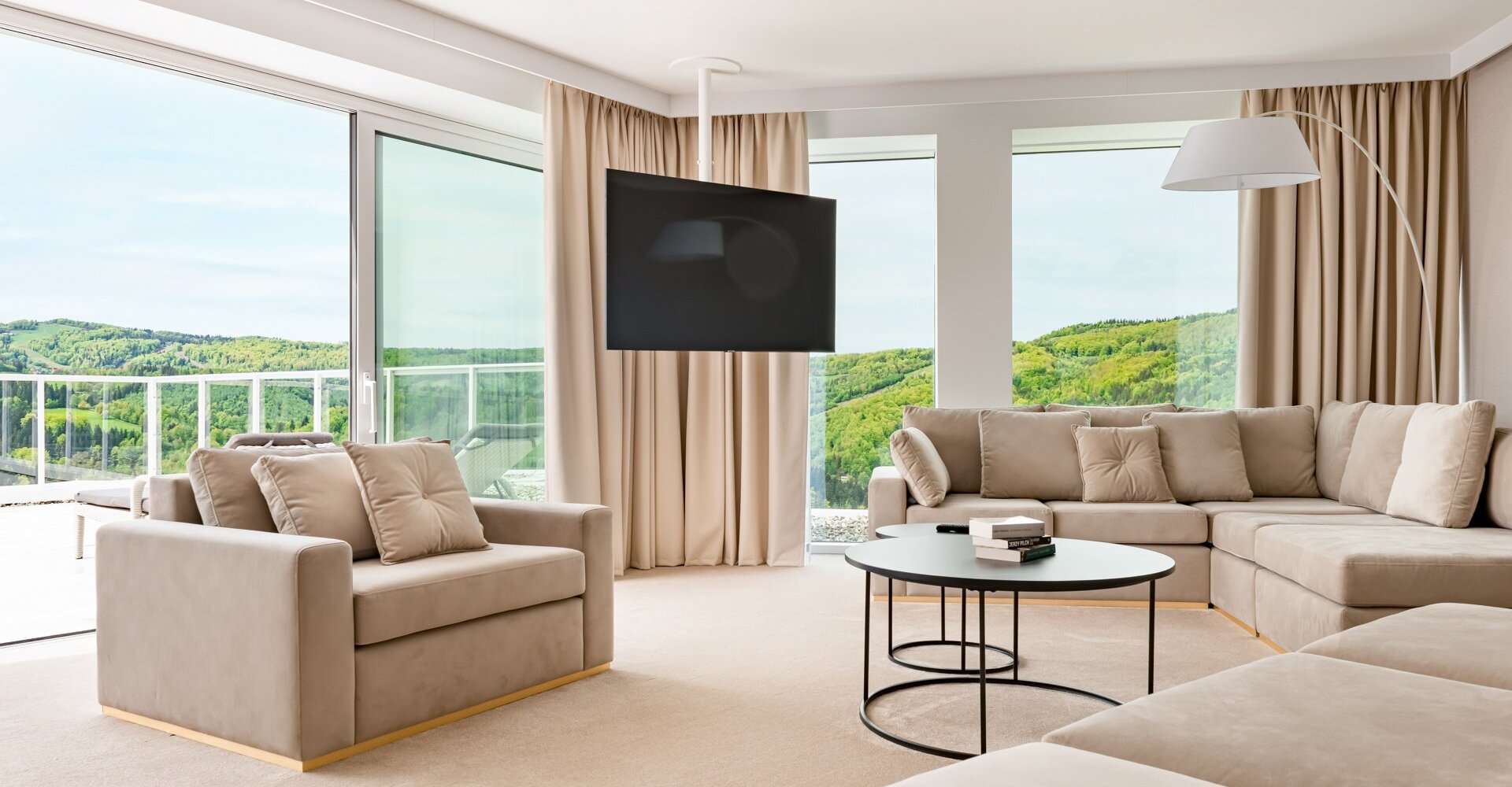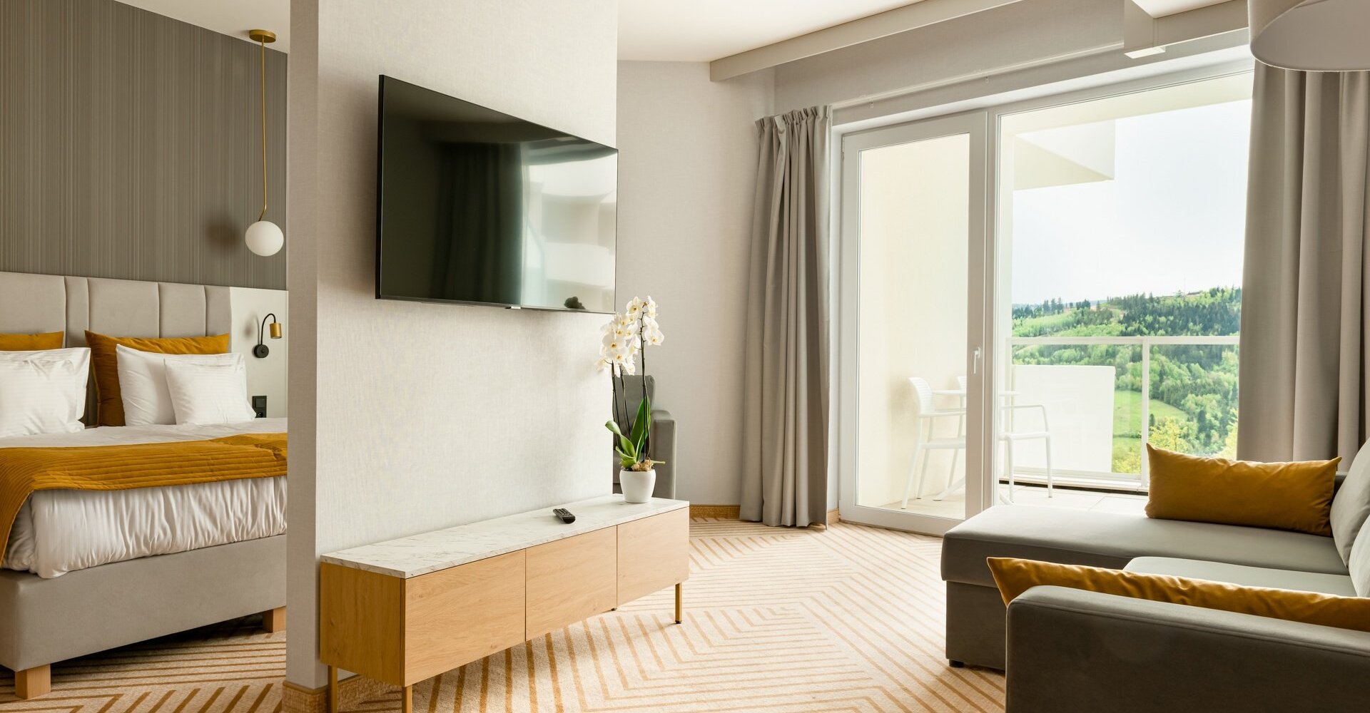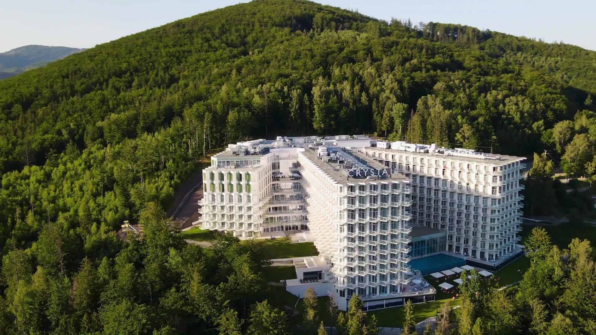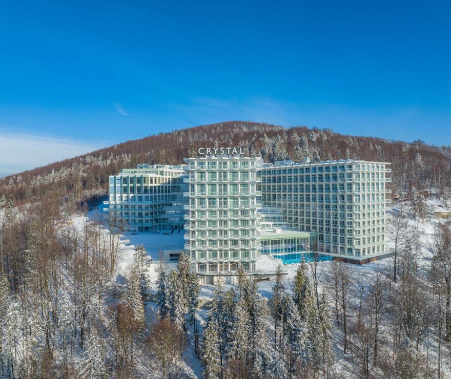 Crystal Mountain to pięciogwiazdkowy hotel w górach, który stanowi oryginalne połączenie nowoczesnego designu z wpisaniem architektonicznej bryły w górski krajobraz. Zbudowany na zboczu Góry Bukowej obiekt buduje dialog z modernistycznym dziedzictwem Beskidów. Crystal Mountain to luksusowy hotel z aquaparkiem i basenem zewnętrznym, co pozwala na korzystanie z nich bez względu na panujące warunki pogodowe. Goście, zarówno latem jak i zimą, mogą cieszyc się wieloma atrakcjami i spędzić tu niezapomniane wakacje z rodziną, romantyczny weekend lub udane spotkanie biznesowe. Zarezerwuj pobyt już dziś i spędź wymarzony urlop w hotelu w górach, który zapewni Ci niezapomniane wrażenia.