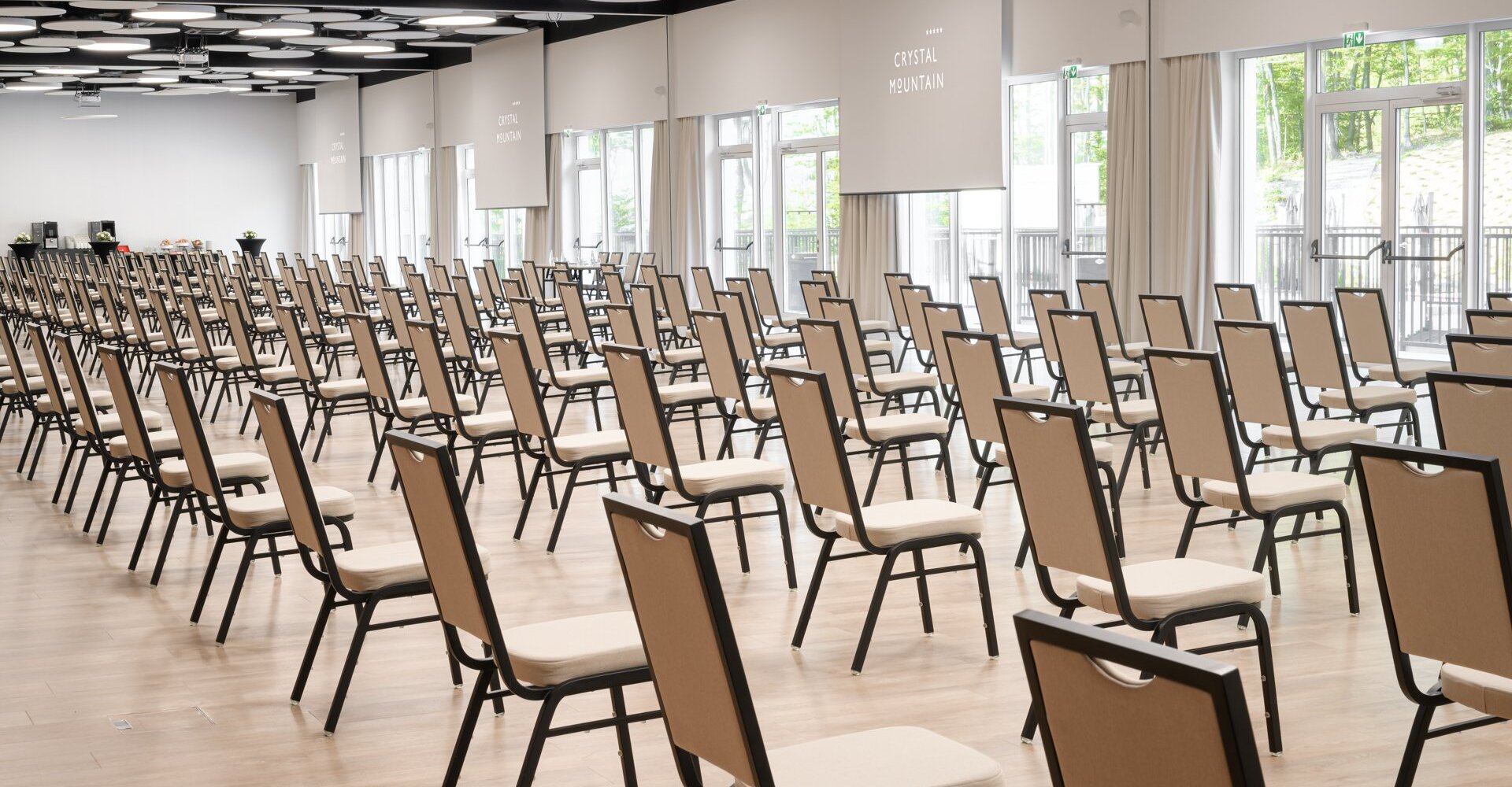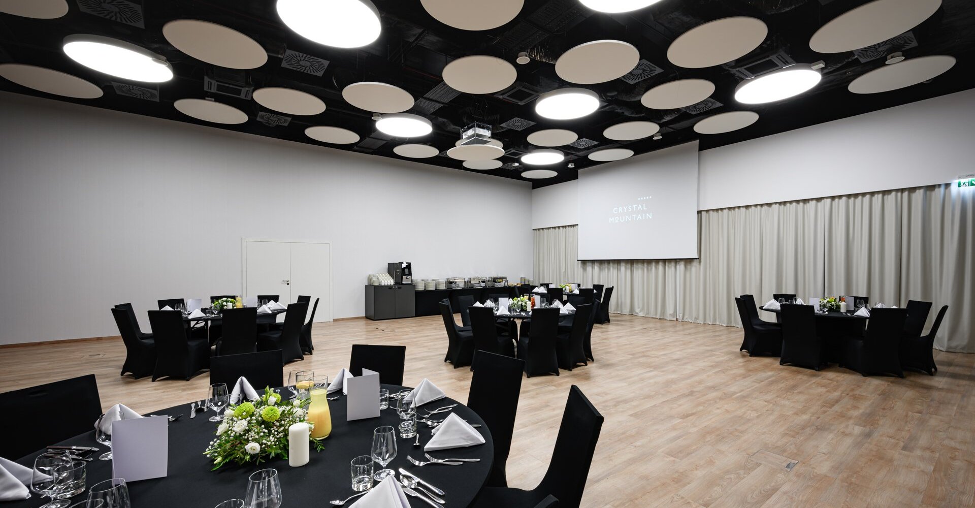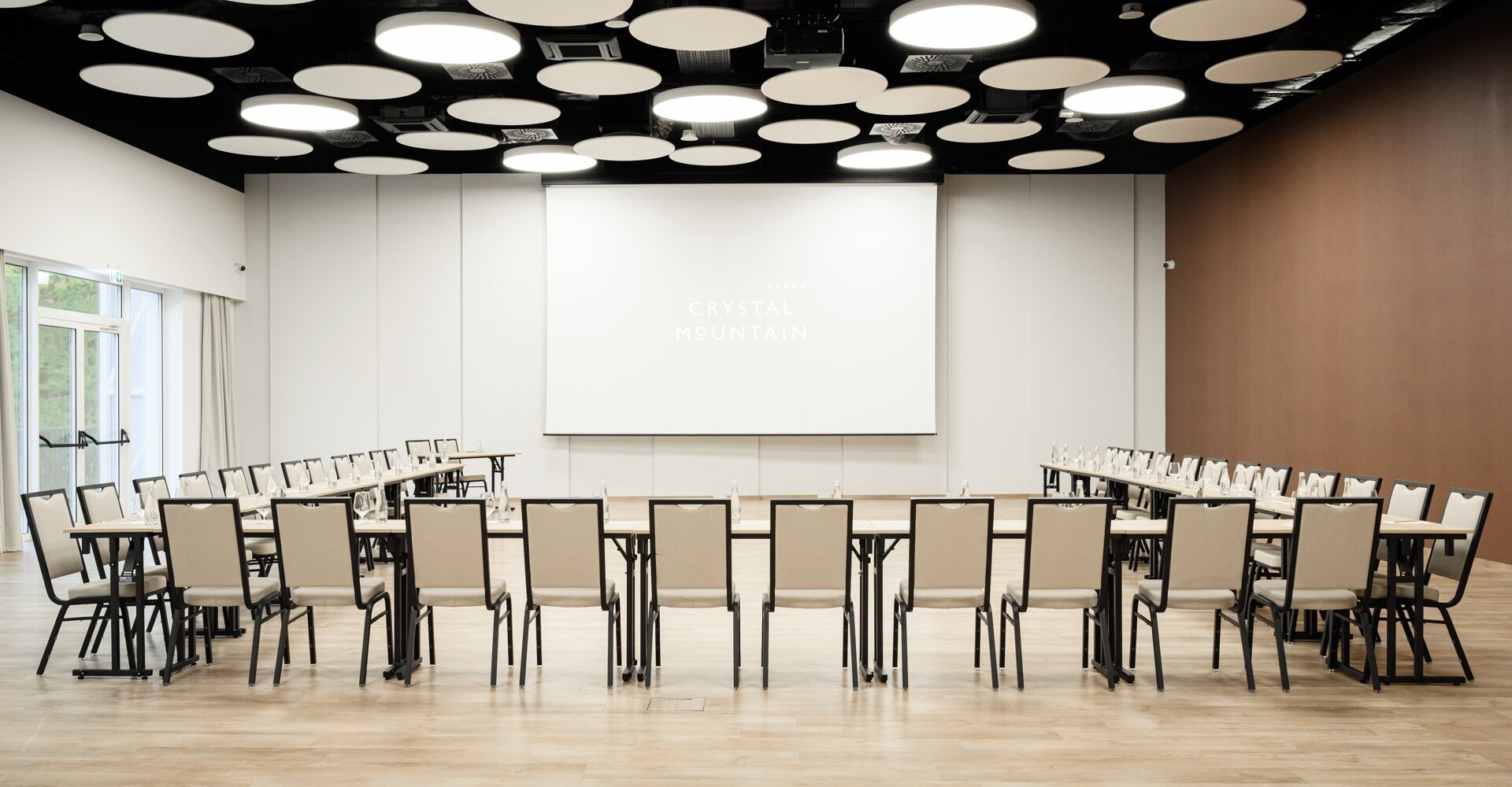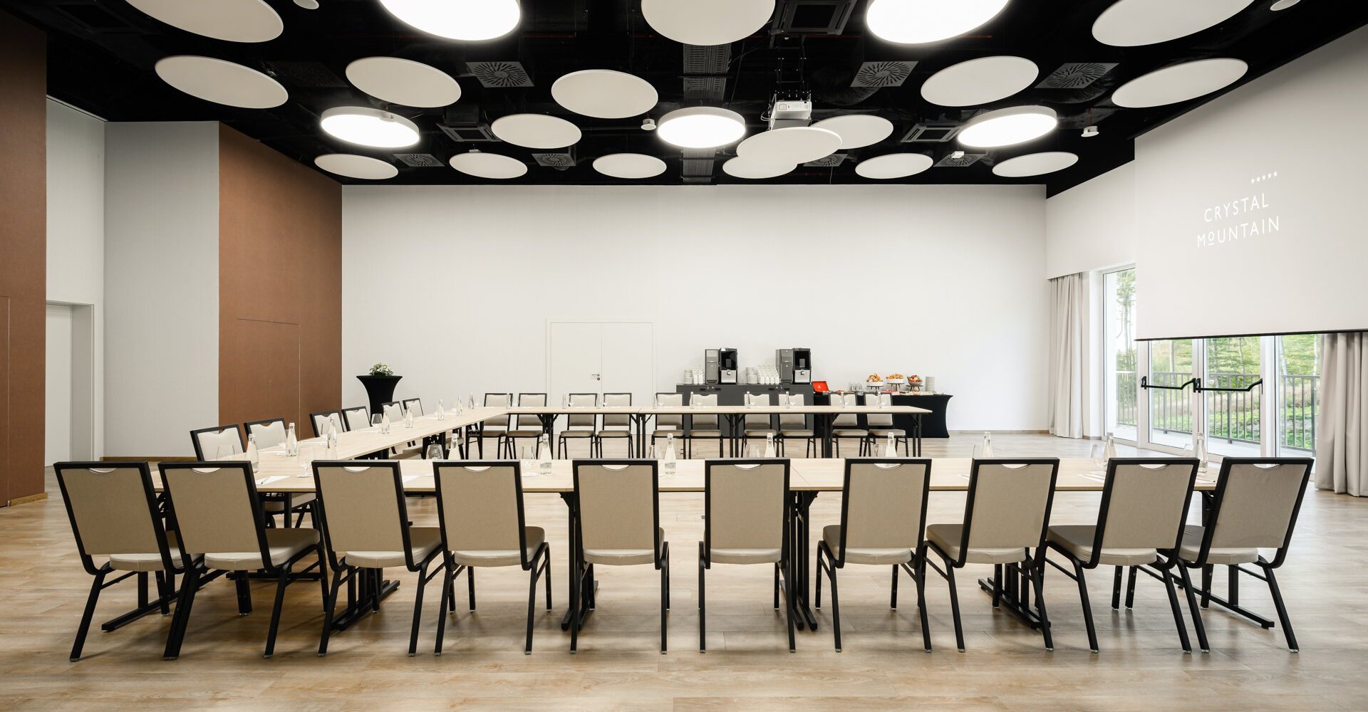 Kubalonka to uniwersalna sala o powierzchni 54m2 przeznaczona do zorganizowania mniejszych, kameralnych konferencji, szkoleń lub spotkań. W ułożeniu teatralnym zmieści się w niej 65 osób. Doskonale nada się jako sala do pracy w zamkniętym gronie podczas szkoleń czy paneli.