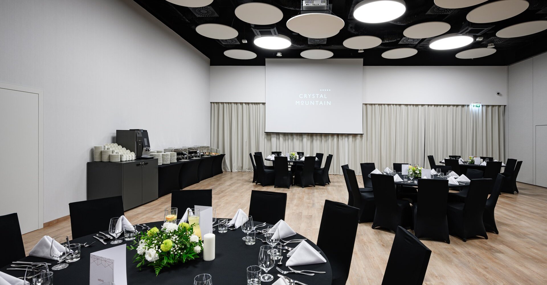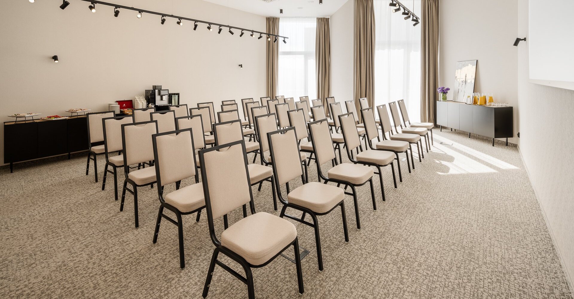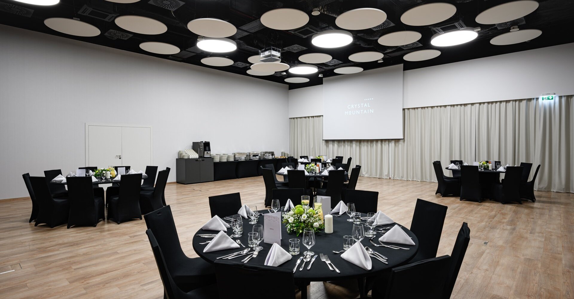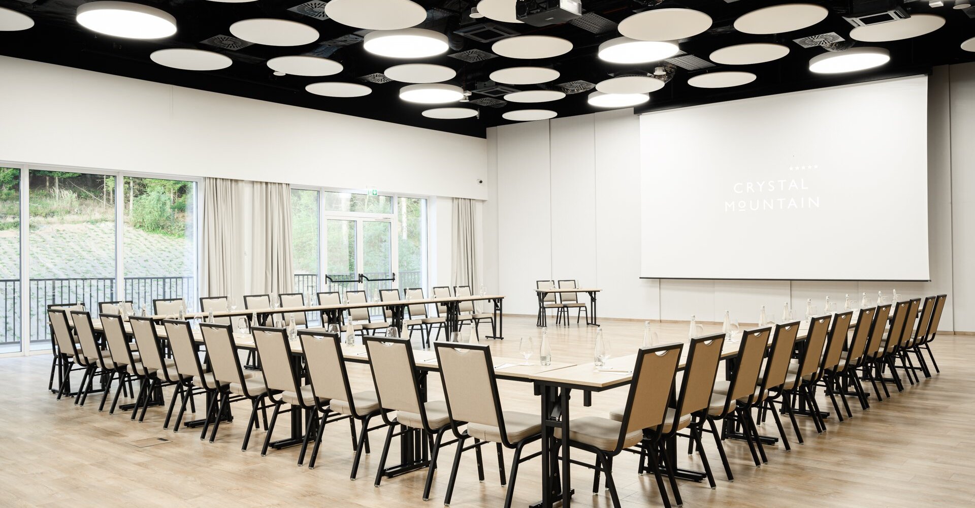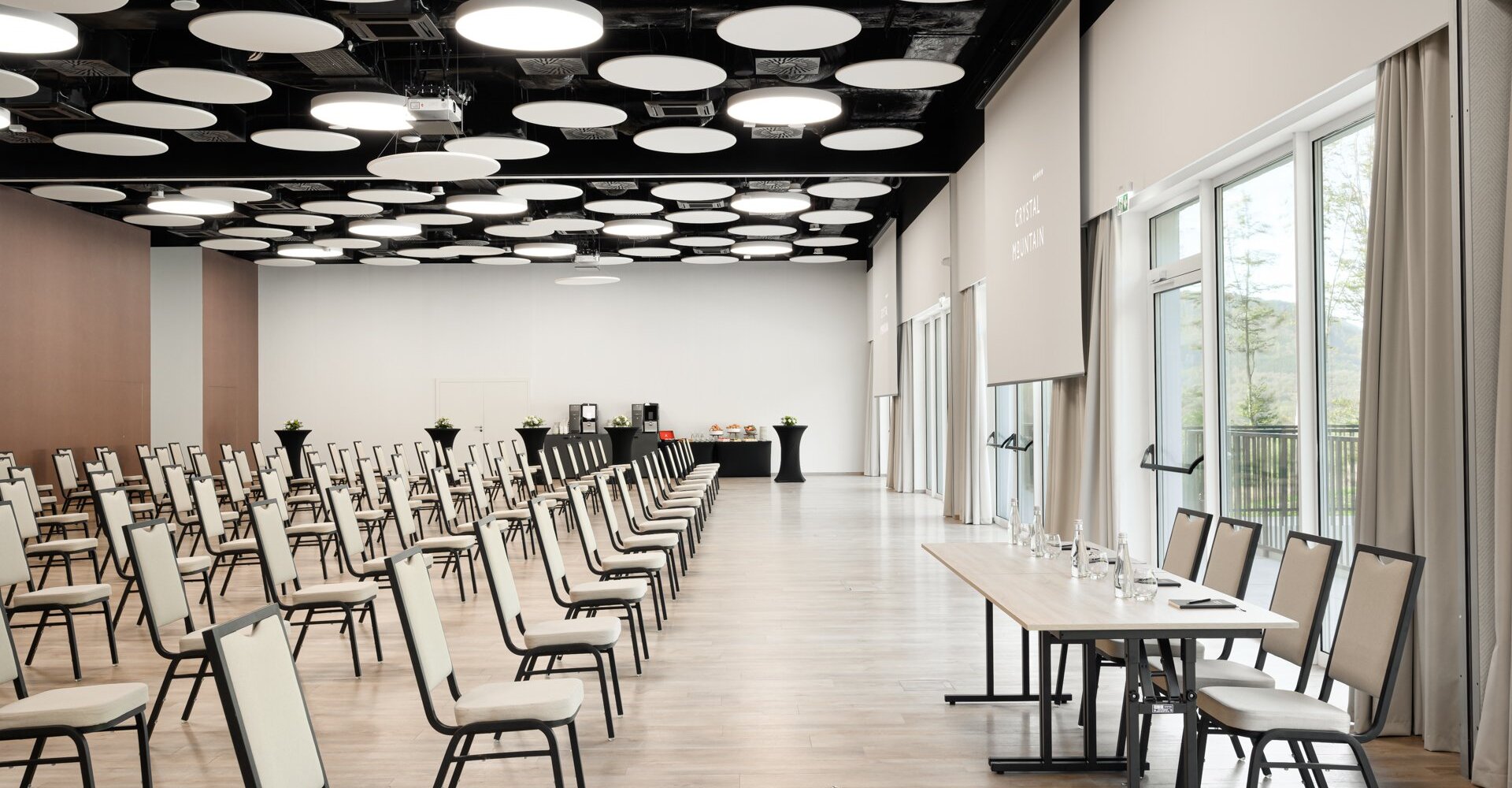 Kubalonka to uniwersalna sala o powierzchni 54m2 przeznaczona do zorganizowania mniejszych, kameralnych konferencji, szkoleń lub spotkań. W ułożeniu teatralnym zmieści się w niej 65 osób. Doskonale nada się jako sala do pracy w zamkniętym gronie podczas szkoleń czy paneli.