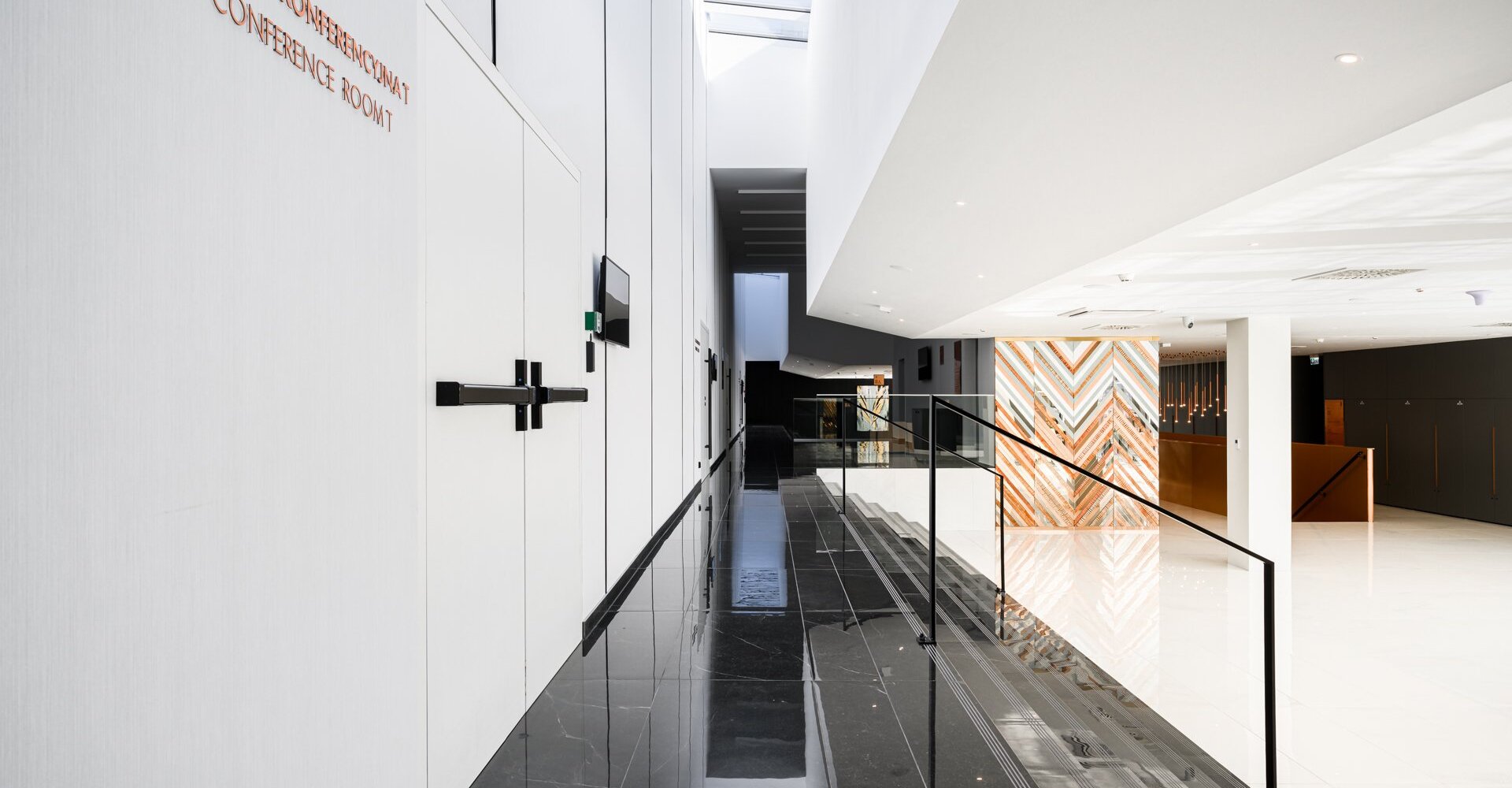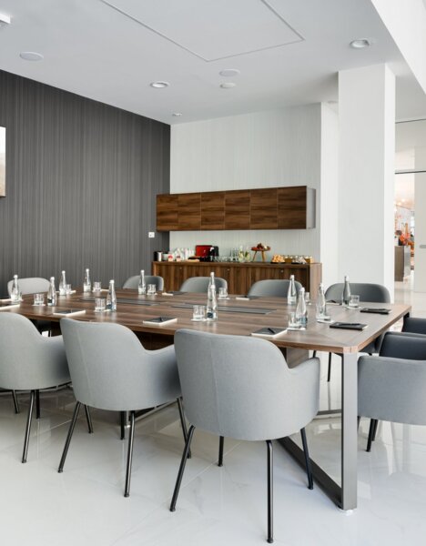 Te dwie sale, każda o powierzchni 27m2, znajdują się na poziomie 8. Przeznaczone są głównie na kameralne spotkania, warsztaty lub posiedzenia zarządu dla maksymalnie 12 osób.