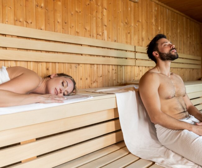 Saunabereich: Saunen: Trocken-, Ritual-, Dampfsauna, Infrarotsauna, Ruheraum mit Aussicht