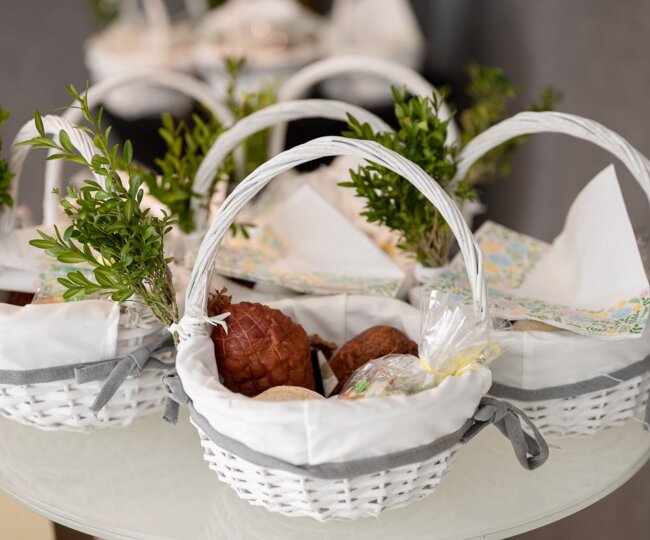 W naszym hotelu doceniamy wielkanocne zwyczaje i zapraszamy gości do wzięcia udziału w tradycyjnym święceniu pokarmów. W Wielką Sobotę spotkamy się, by razem przeżyć tę piękną tradycję. Kapłan pobłogosławi świąteczne przysmaki - symbole życia, odrodzenia i Chrystusowego zmartwychwstania, takie jak jajka, chleb, sól, czy wędliny. Każdy gość może przynieść swój koszyczek do święcenia, zamówić go przed przyjazdem lub zakupić na miejscu gotowy koszyczek.