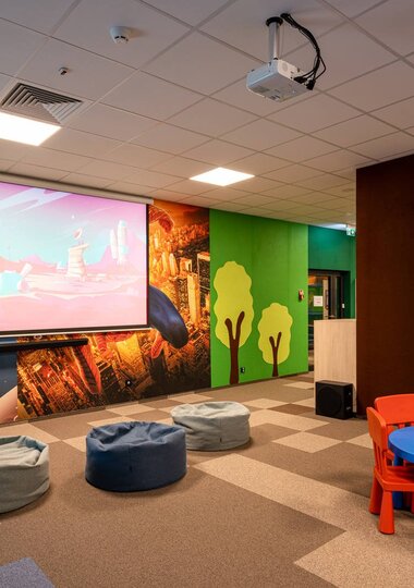 Game Room: sala multimedialna z dostępem do konsol XBOX oraz PS5 z szerokim wyborem gier, dostępna przez całą dobę