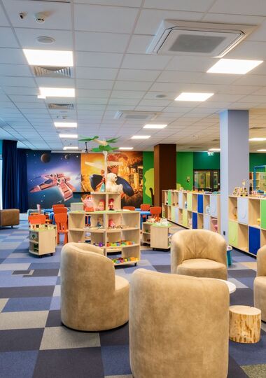 Kids Club: kolorowy raj dla dzieci o powierzchni 327m2 : małpi gaj pełen przeszkód i labiryntów, dwa baseny z kulkami, komfortowa strefa wypoczynkowa dla dorosłych z wygodnymi kanapami i stolikami, mnóstwo zabawek dla dzieci w każdym wieku, czynny jest od 7.00 do 23.00