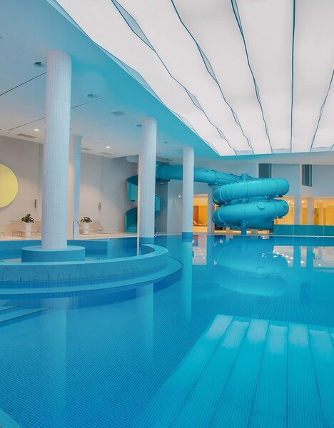 Godziny otwarcia: codziennie od 9:00 do 21:00. Aquapark Blue Lagoon to nowoczesny kompleks wodny, dostepny wyłacznie dla gosci hotelowych. Znajdziesz tu basen rekreacyjny, sportowy z torami do pływania, wanny jacuzzi, zjezdzalnie oraz zewnetrzny basen rekreacyjny „Infinity”, przy którym mozesz wypoczac na lezaku, podziwiajac panorame gór. Dla dzieci przygotowano brodzik z atrakcjami i Zółta Łodzia Podwodna, a dla dorosłych relaks i ukojenie w specjalnie dedykowanej strefie saun rytualnych, suchych, infrared i parowych.