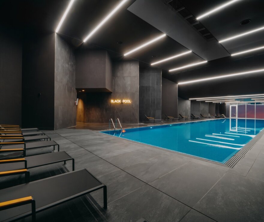 Godziny otwarcia: codziennie od 8:00 do 21:00. Black Pool to imponujacy basen sportowy o długosci 24 metrów, przeznaczony wyłacznie dla osób powyzej 16. roku zycia. Jego wyjatkowy design, z ciemnymi scianami przypominajacymi górska jaskinie, tworzy atmosfere sprzyjajaca skupieniu i relaksowi. To idealne miejsce dla tych, którzy pragna popływac w spokojnej i eleganckiej przestrzeni.